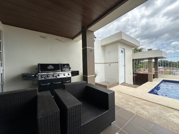 The pool, designed with modern lines, is the perfect place to cool off and enjoy Panama’s tropical climate. 🏊‍♂️ Next to the pool, you’ll find a barbecue area, ideal for outdoor gatherings and celebrations with family and friends. This space combines comfort and fun, ensuring every moment is unforgettable.